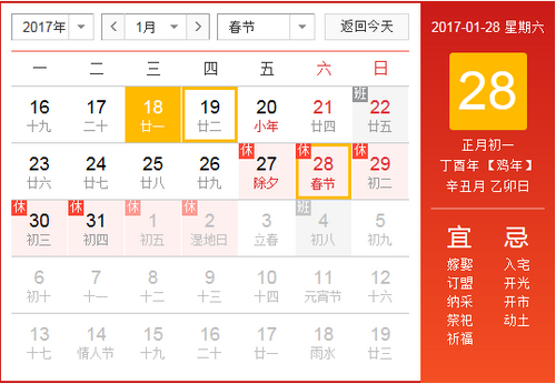 一、放假時(shí)間安排:2017年1月24日(星期二)至2017年2月3日(星期五)放假,共11天,2月4日(星期六)正常上班;